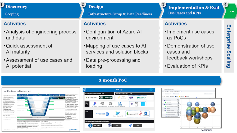 Mit Systems Engineering Copilot, unseren Beratungsdienstleistungen wie dem Value Discovery PoC und der strategischen Zusammenarbeit mit Microsoft ist NTT DATA Ihr idealer Partner auf dem Weg zur KI-gestützten Produktentwicklung. Die Investition in KI-gesteuerte Innovationen zahlt sich aus – durch gesteigerte Wettbewerbsfähigkeit und Skalierbarkeit in einer sich rasant verändernden Branche.